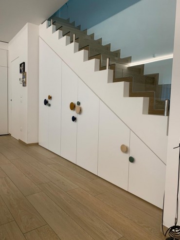 Mobile a 1 anta e 2 cassetti inserito in una nicchia sottoscala